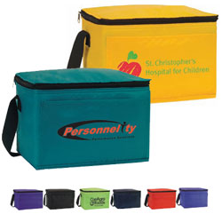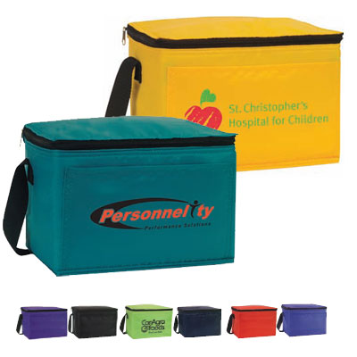 Products > Insulated Cooler Bags > Polyester 6 Can Cooler with Top Zipper Closure and Front Pocket