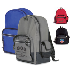 Two dual zipper main compartment Large zippered pocket Gusset side pocket, side mesh bottle holder Padded back straps w/keychain holder Webbed loop Reflective piping for safety |