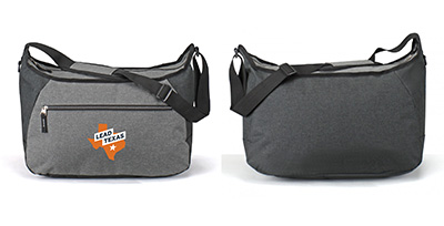 300 Denier Polyester fabric Large zippered main compartment Front zipper pocket Adjustable padded shoulder strap Interior slip pockets |