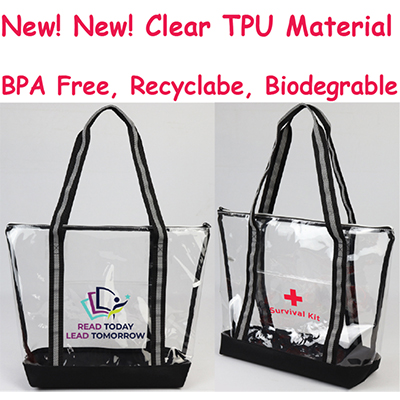 Products > Totes > RECYCLABLE AND BIODEGRABLE CLEAR TPU Zipper Tote W/FRONT POCKET