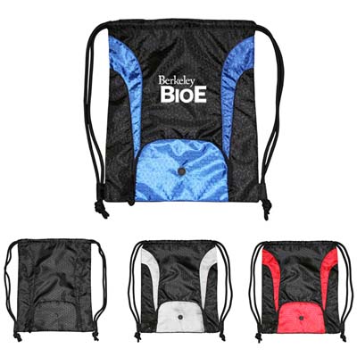 Double zipper front pocket, earphone outlet, the best drawstring backpack , 420d Honeycomb, Rip stop Nylon fabric with PU coating, Black super thick Duro cord, large front and back sides imprinting areas |