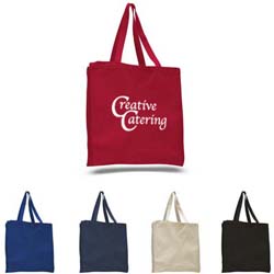 100% Cotton Canvas Large open main compartment Large imprinting area on both sides Both handles at top |