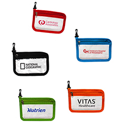 ADDITIONAL INFORMATION: 600D Polyester with Clear Vinyl window and one utility Clip. Ideal for small travel items. Perfect promotional give away item. |