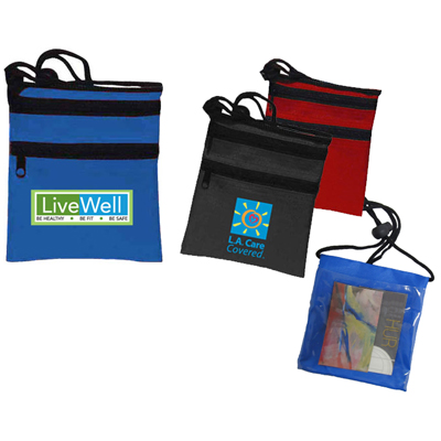 ADDITIONAL INFORMATION: Two zipper front pockets Clear vinyl ID pocket Adjustable neck cord |