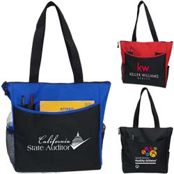 Polyester Convention Tote with Side Pockets and Pen Holders
